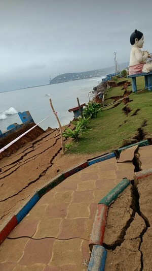 #StormSurge damages beach front park near #RKBeach #Vizag