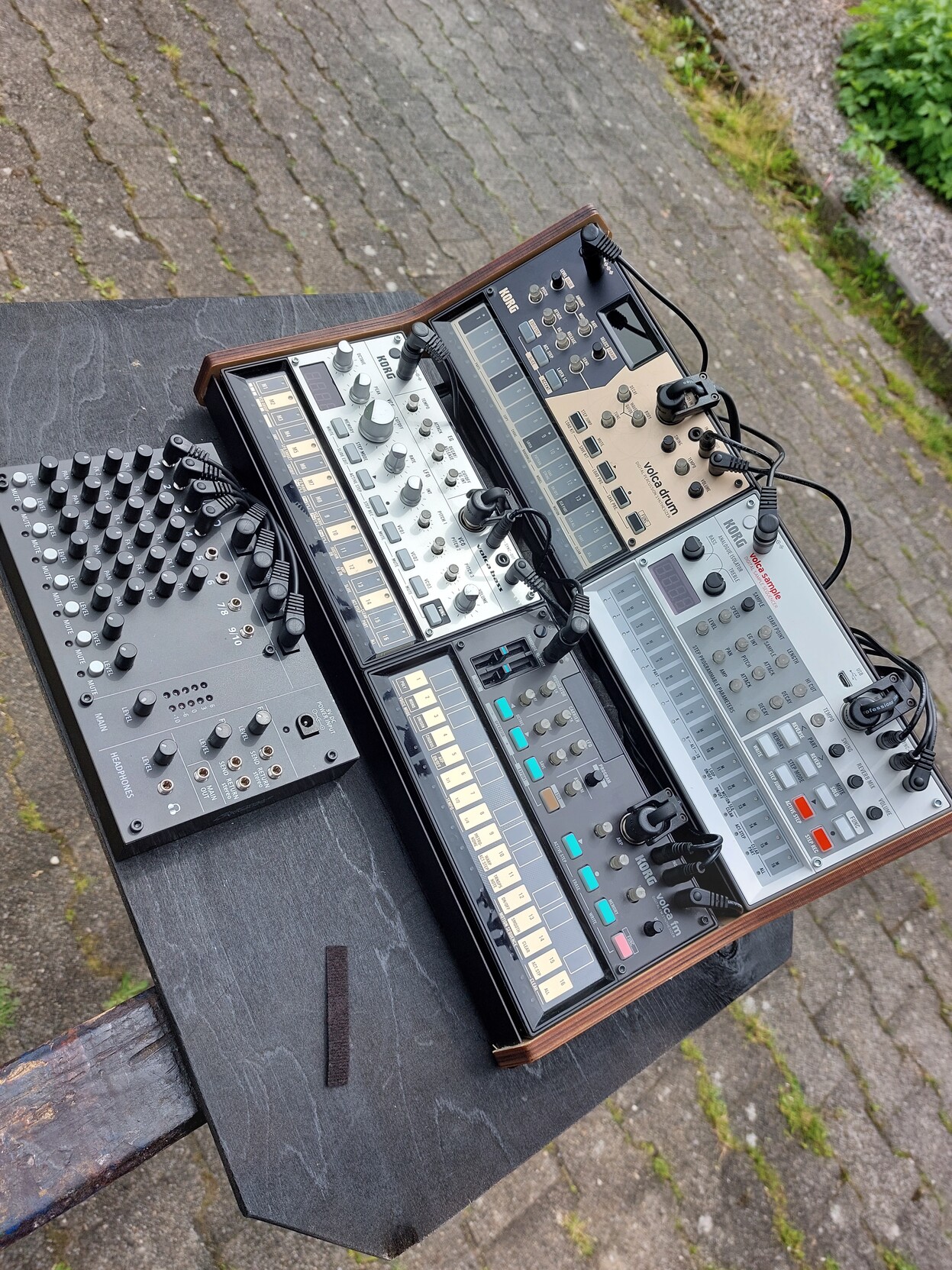 Nun ist alles verkabelt und fixiert. Alles passt schön in die Tasche und ich muss nur noch 1x Strom, die Controller Keyboards und 1x Outpot anschließen.