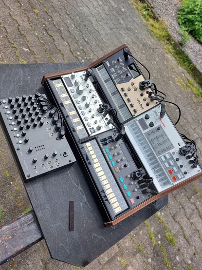Today's Sunday afternoon #Noisevember jam #4 - "The Perils of Unsupervised & Unsynced Arpeggiation" - this time with a bunch of #Volca #synths and a glass of vin ordinaire or two... which probably accounts for the er idiosyncratic rhythms (aka mistakes). A one-take wonder recorded direct to a Zoom. #music (?)