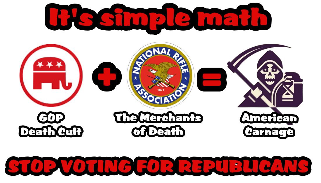 The @GOP@twitter.com will pass any bill that puts more money in the hands of the @NRA@twitter.com . Because all they are is paid spokespeople for Big Gun. Its about money, not security.