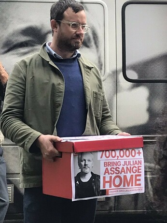 Julian's brother @gabrielshipton@twitter.com delivers 700.000 signatures calling on the Australian government to bring Julian #Assange home. #FreeAssangeNOW #BringHimHome #WorldPressFreedomDay #WPFD2022
