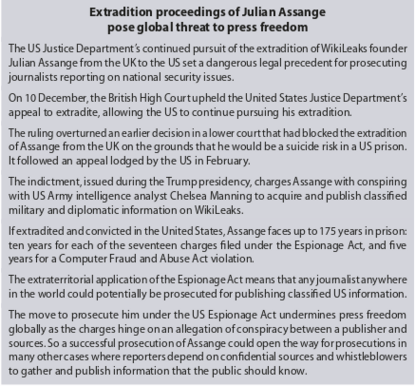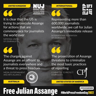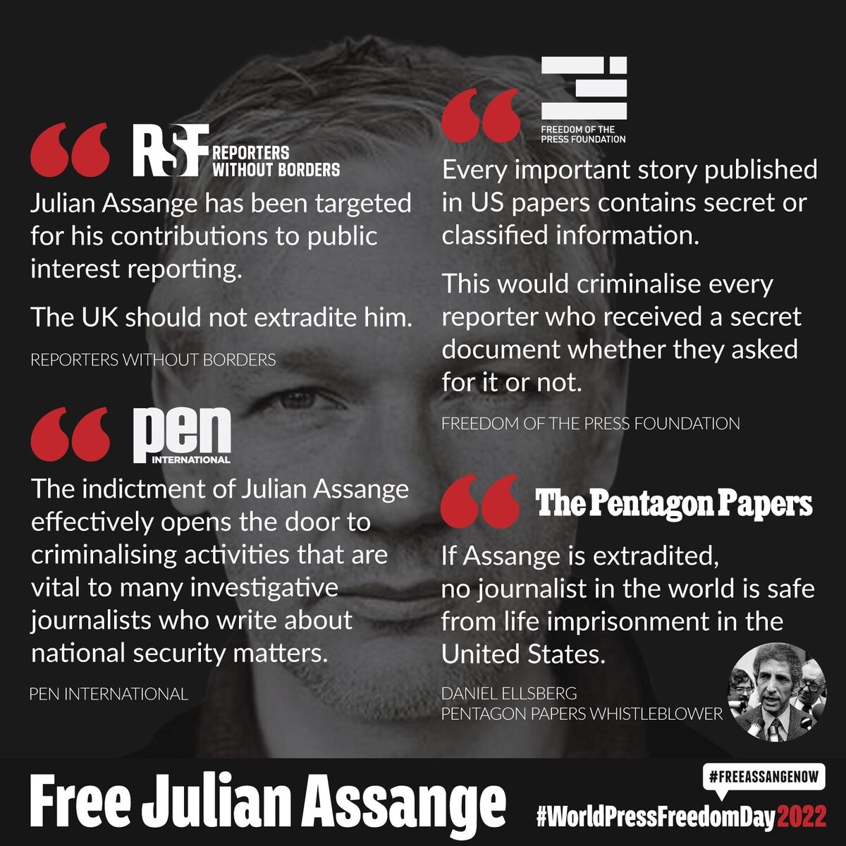 Across the world press freedom orgs oppose the extradition of Julian Assange - facing a 175 year sentence if extradited for publishing truthful information in the pubic interest #FreeAssangeNOW #WorldPressFreedomDay #WPFD2022 @NUJofficial @IFJGlobal