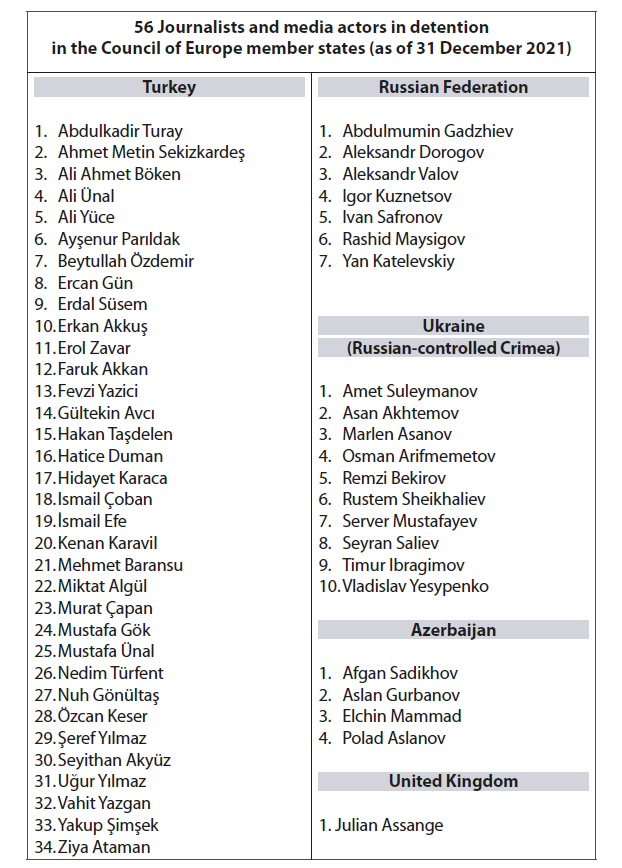 '56 Journalists and media actors in detention in the Council of europe member states' | @coe #Assange #WorldPressFreedomDay #WPFD2022