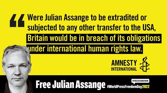 "Were Julian Assange to be extradited or subjected to any other transfer to the USA, Britain would be in breach of its obligations under international human rights law" @amnesty #WPFD2022 #WorldPressFreedomDay #FreeAssangeNOW https://t.co/JG6t07aEQh