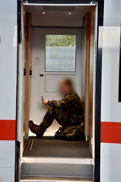 1️⃣ #Soldat sitzt im vollen #Zug auf dem Gang