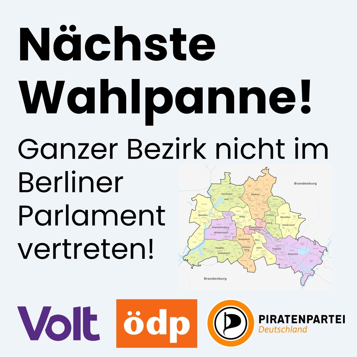 Bis zu 200.000 Stimmen gingen wohl an Parteien, die an der Prozenthürde scheiterten. Das sind mehr Stimmen als Wahlberechtigte in so manchem Bezirk. Berlin braucht die #Ersatzstimme. #Wahlpanne #SonstigeBezirk #Berlinwahl