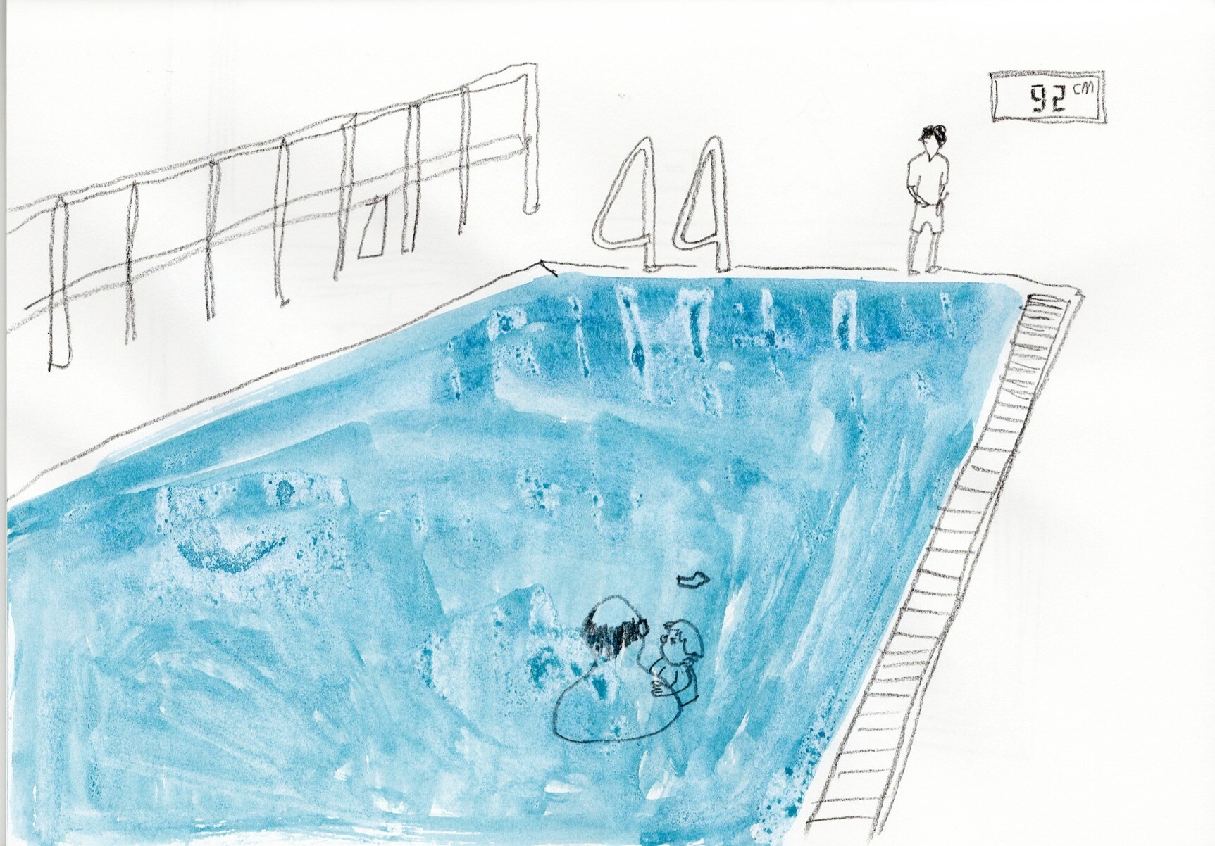A sketch from trying to take my daughter swimming but she hated it so we've given up until she's a bit older. The cafe at this swimming pool had a big viewing window right next to the baby pool so I had a perfect view.