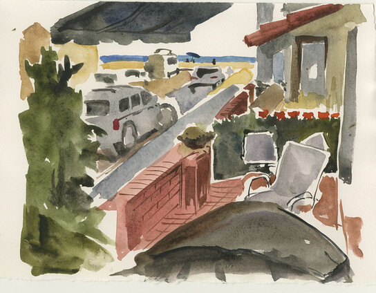 A lazy day 4 sketch out of the window of the vacation rental. It's painted on that kind of paper where you can't control anything. Glad to be doing it though. #watercolor #urbansketching