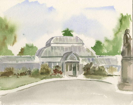 Just got back from maybe my longest vacation as an adult, just over a week. This watercolor, done on site, is from Seattle. There's a conservatory in a park with tropical plants. #watercolor #urbanSketching