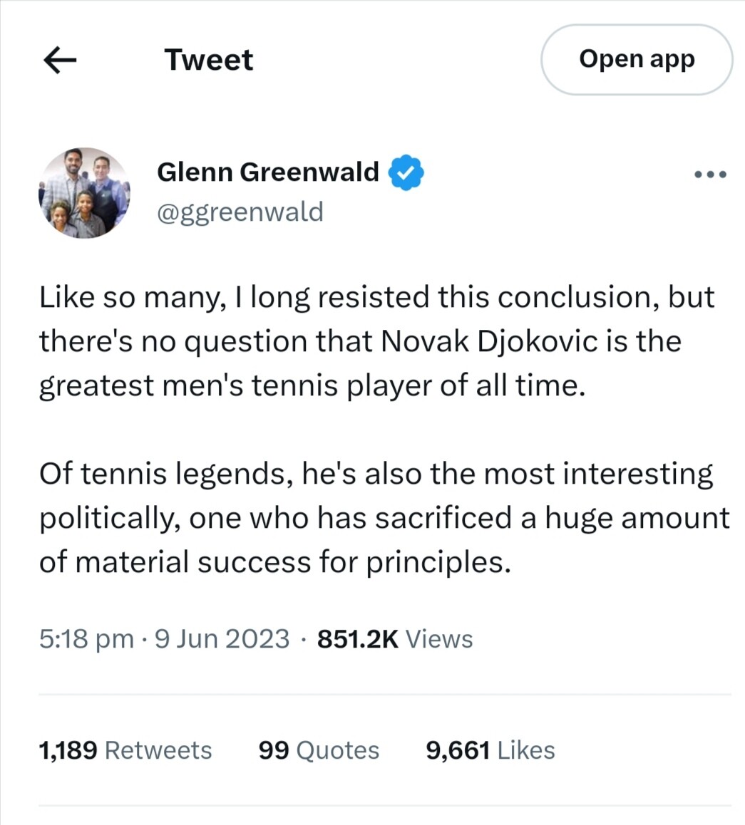 头条文章:《诺瓦克·德约科维奇 刚刚创造了“穆罕默德·阿里时刻”》