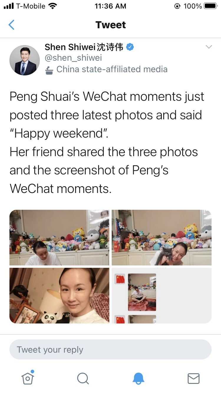 //And now another employee of state broadcaster CGTN somehow has access to Peng Shuai's friend's WeChat…//