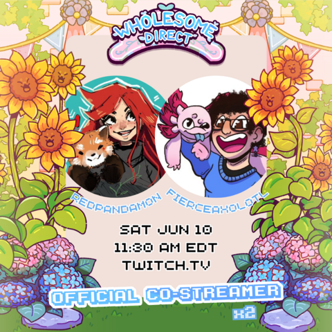 Heather (redpandamon) and I are co-streaming the #WholesomeDirect ! We'll start our streams 30 minutes before the direct, to chat with you all about predictions, expectations, etc. You all know how much I love games promoted by this curator page, so I'm VERY excited for this 💙 Hope to see you there!