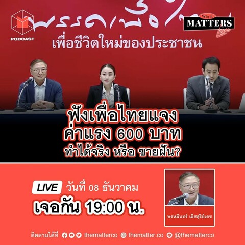 LIVE : #WhyItMATTERsNOW | ฟังพรรคเพื่อไทยแจงค่าแรง 600 บาททำได้จริงหรือขายฝัน?