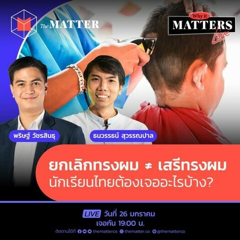 #WhyItMATTERsNOW วันนี้ขอชวน ไอติม-พริษฐ์ และ ครูทิว-ธนวรรธน์ มาร่วมคุยถึงประเด็นทรงผม (ที่มากกว่าทรงผม) และรวมไปถึงคุยเรื่องหลักสูตรการเรียนที่นักเรียนไทยต้องเจอ หลังกระทรวงศึกษาฯ ประกาศยกเลิกระเบียบทรงผมนักเรียน โดยให้สถานศึกษากำหนดเองได้