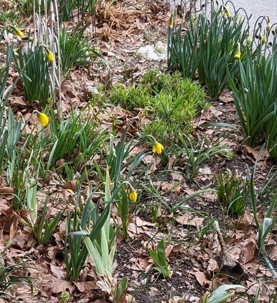 Daffodils in flower outside 24th precinct on 100th in UWS on Monday. Granted it's south facing.