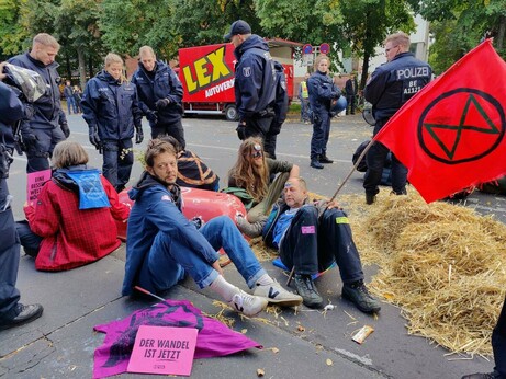 Zum Auftakt der #HerbstRebellion blockieren wir seit gut 3h eine zentrale Kreuzung in Kreuzberg.