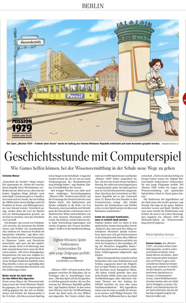 Wie schön, dass „Mission 1929 - Freiheit unter Druck“, das Spiel, das ich für Pfeffermind über den Verfall der Demokratie am Ende der Weimarer Republik illustrieren durfte, in der Berliner Morgenpost besprochen wurde! Dank an Christine Weiser!