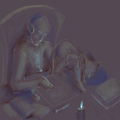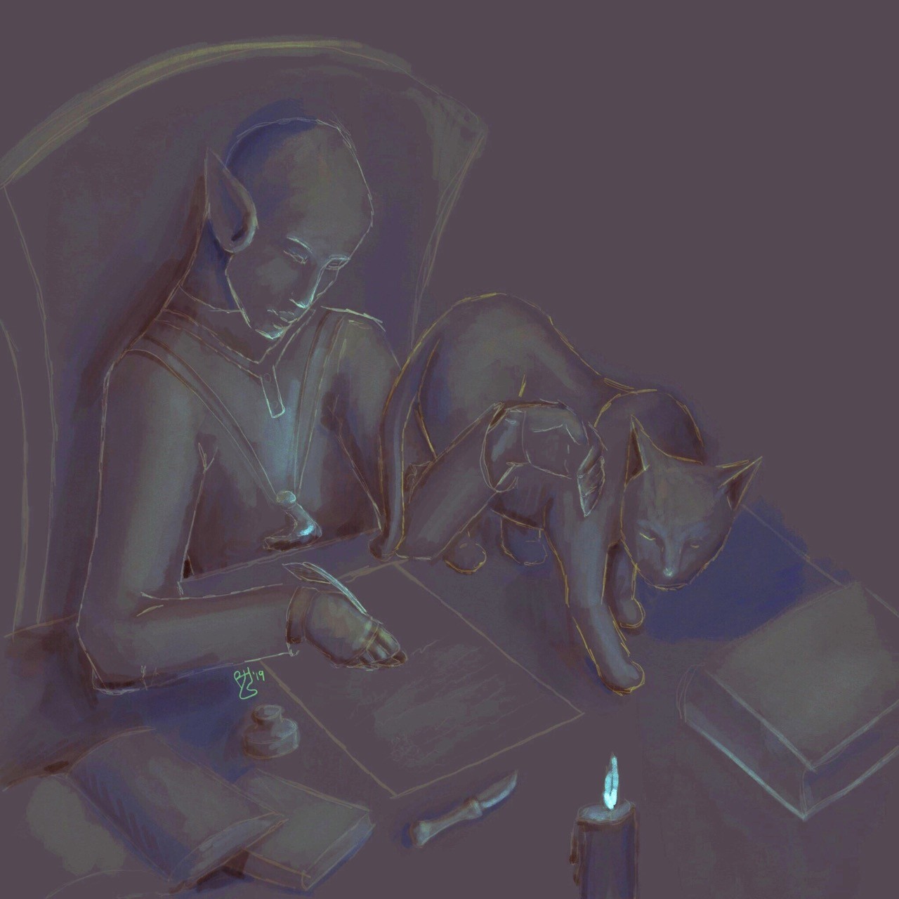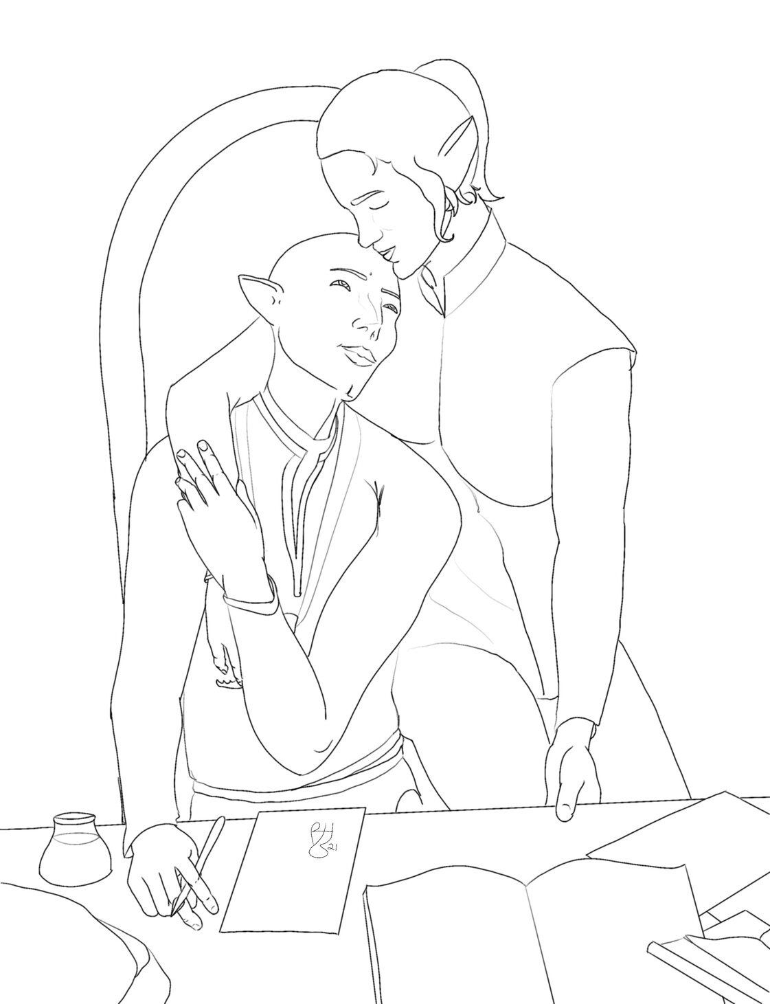 This is from a scene in Wolf Ascendant where Innè borrows Solas's books. I started coloring it before realizing that I made her arms way too short, oops! #DragonAge #InnenhalLavellan #WolfAscendant #DragonAgeInquisition #fanart #wip