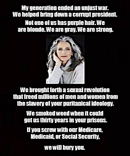 I love this! Don’t mess with our Social Security and don’t mess with our Medicaid or Medicare! In fact, I strongly suggest you don’t mess with WOMEN! #WomensRights #WeWillBuryYou #WomenGetThingsDone #WomanPower #DemVoice1 #ProudBlue