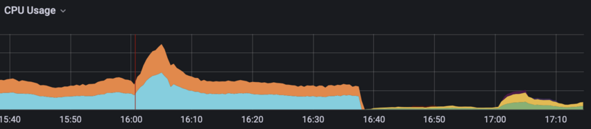 This shows a sharp decrease of CPU usage for a small Sinatra-based API.