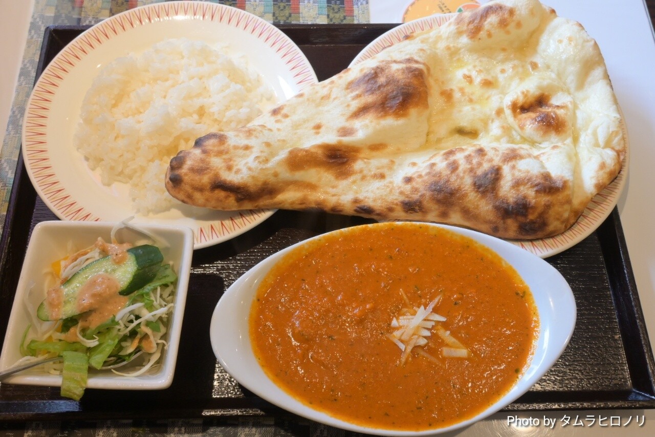 ハーフサイズのナンを頼んだんですが、大きいです(´・Д・)ナンガ オオキイ