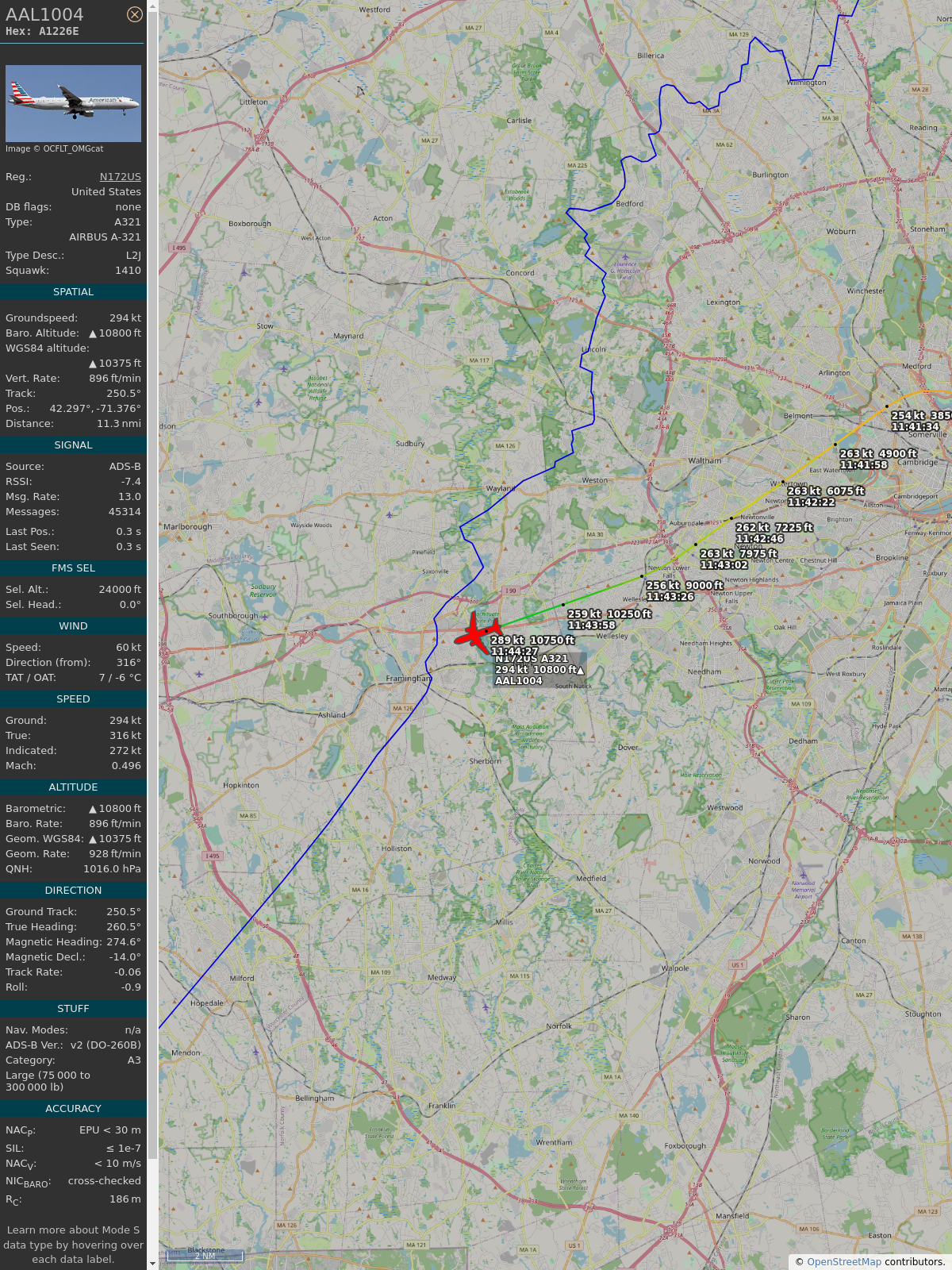 #a1226e #aal1004 #americanairlines #bos #clt #planefence #adsb