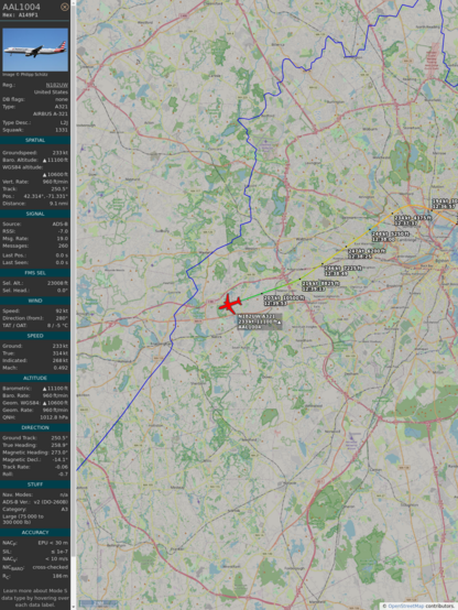 #a149f1 #aal1004 #americanairlines #bos #clt #planefence #adsb