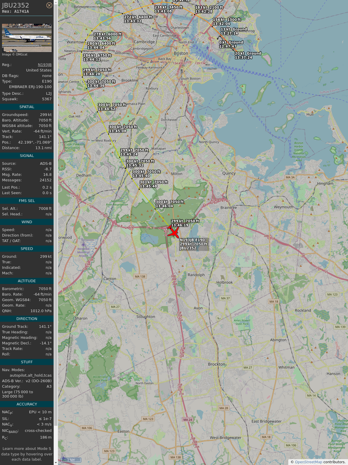 #a1741a #jbu741 #jetblue #bos #srq #planefence #adsb