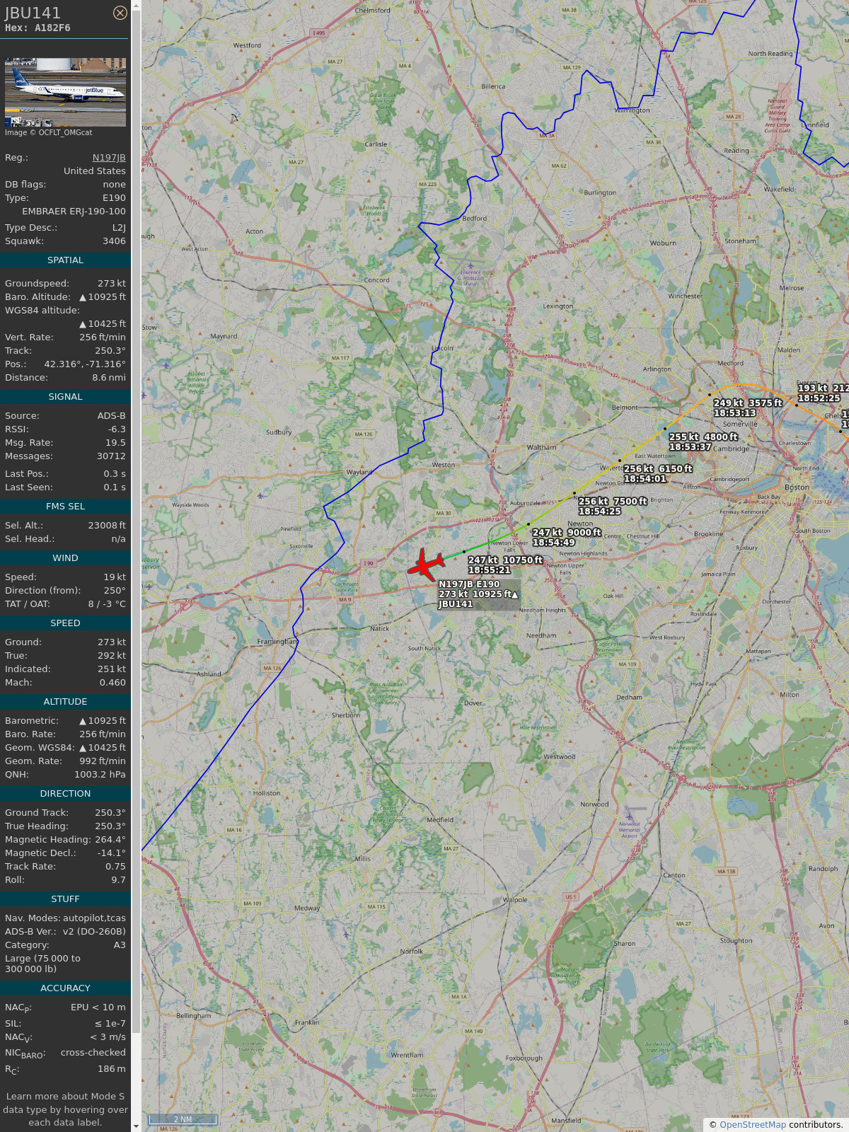#a182f6 #jbu609 #jetblue #bos #jax #planefence #adsb