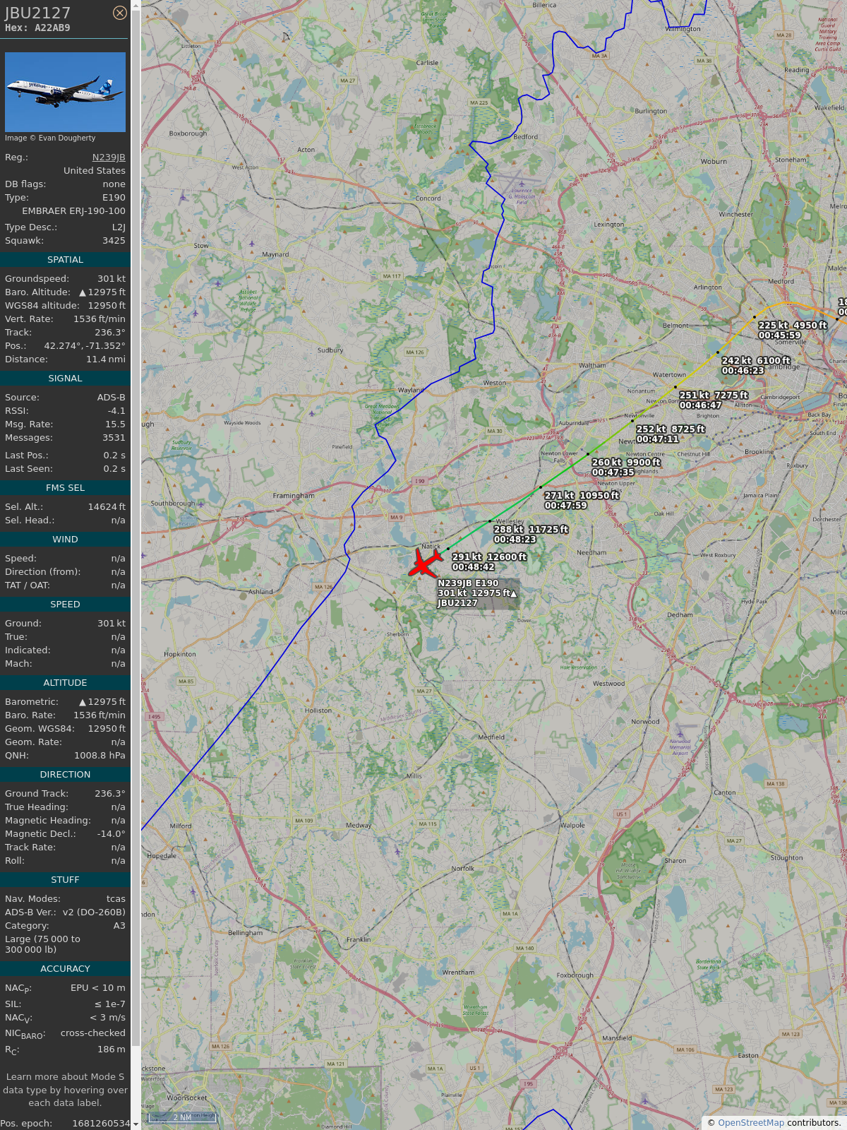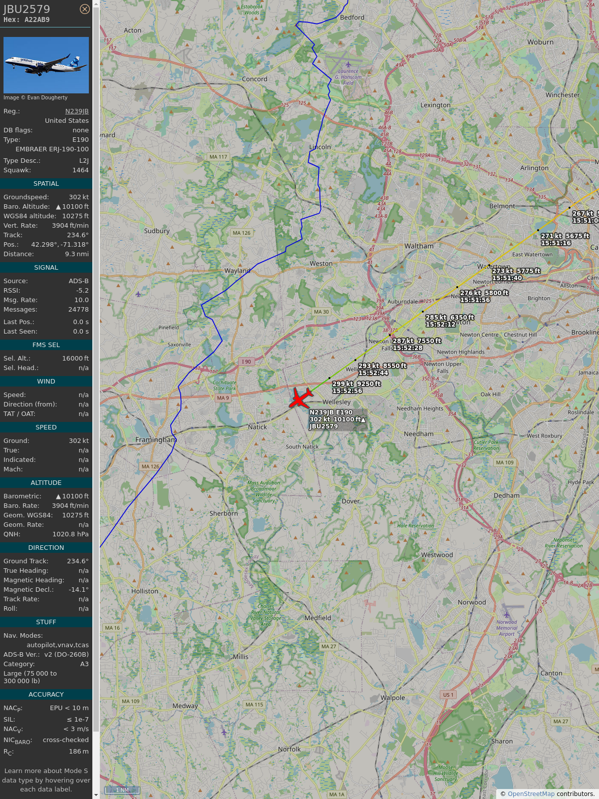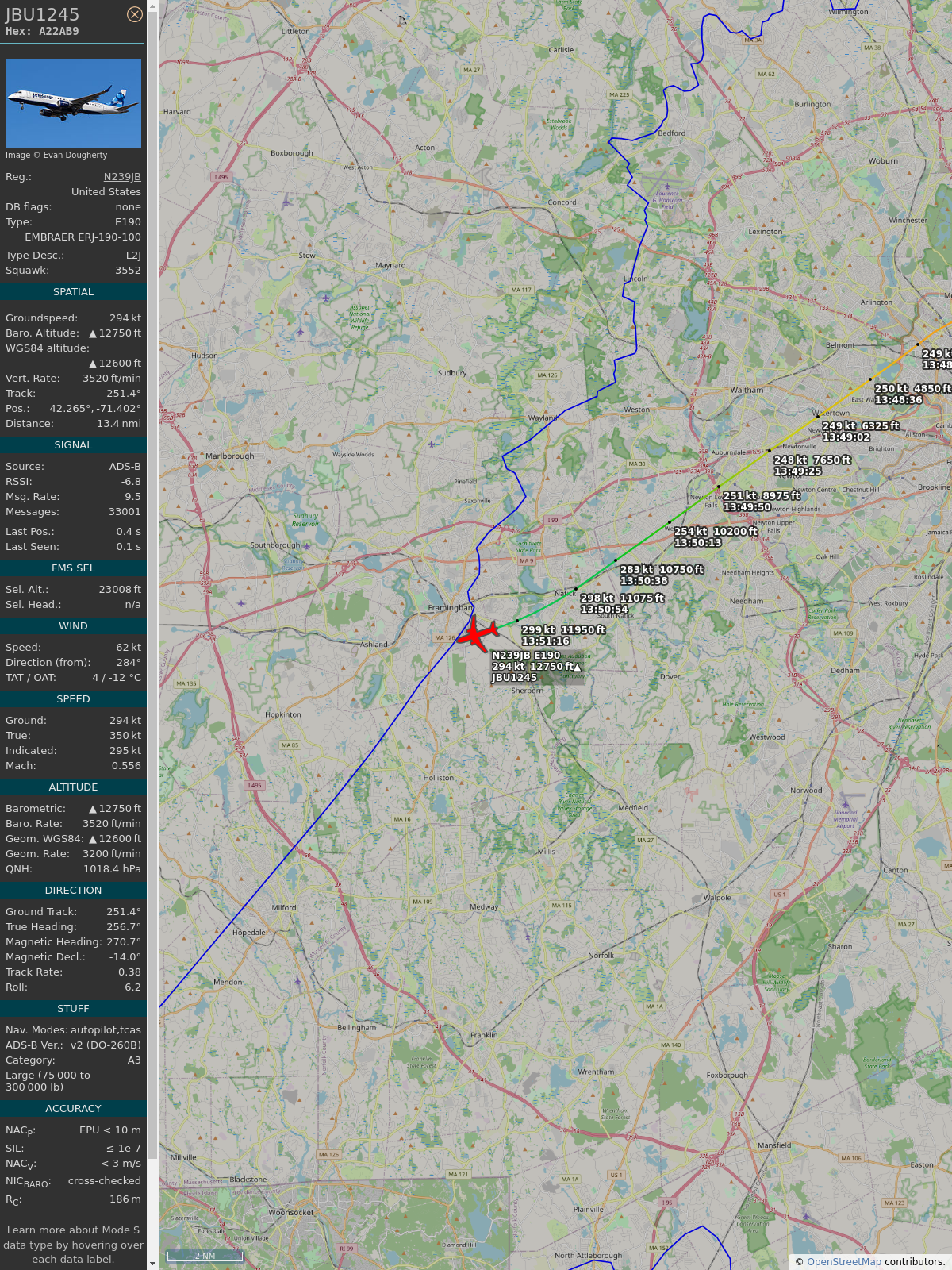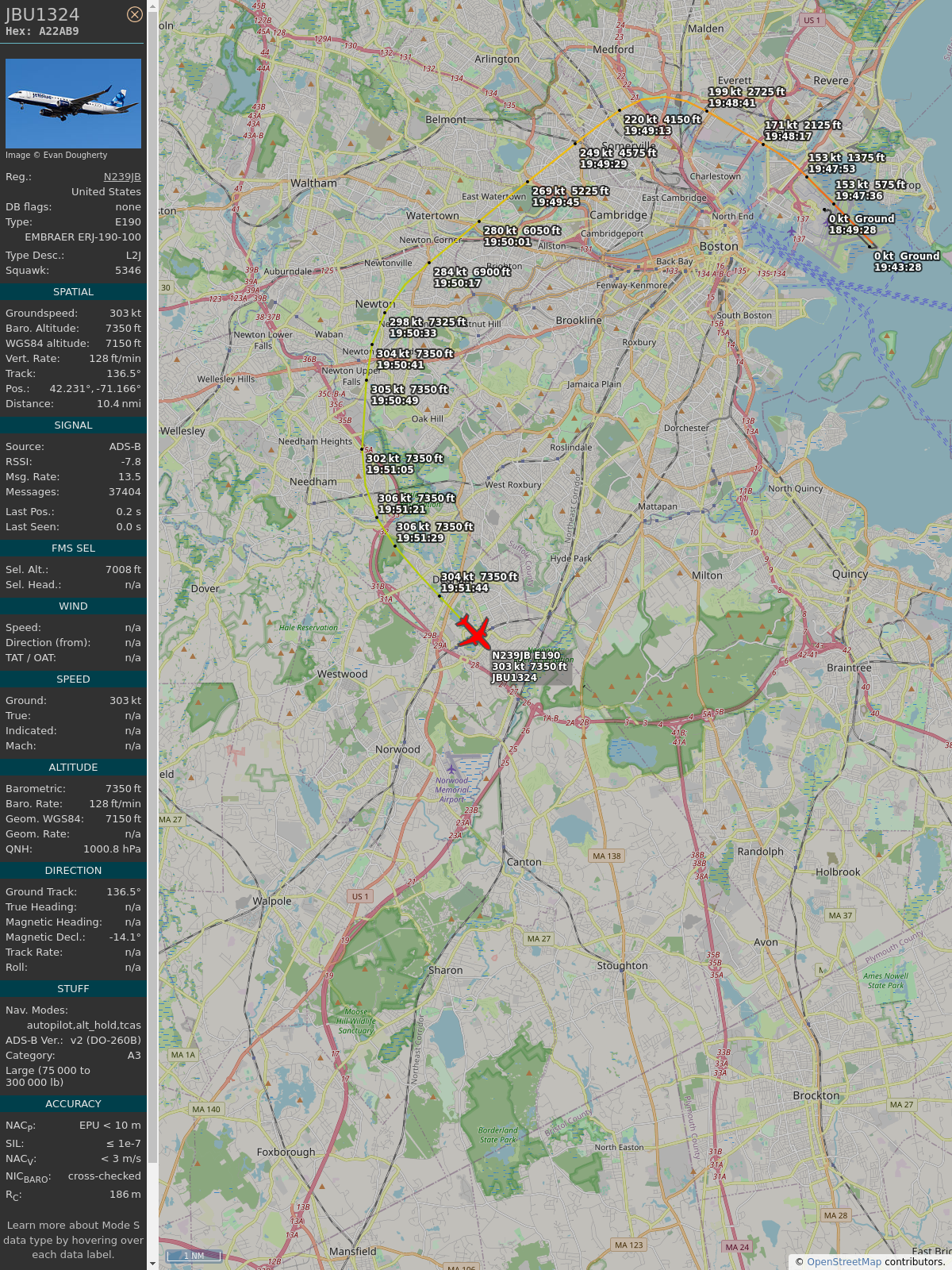 #a22ab9 #jbu1245 #jetblue #bos #clt #planefence #adsb