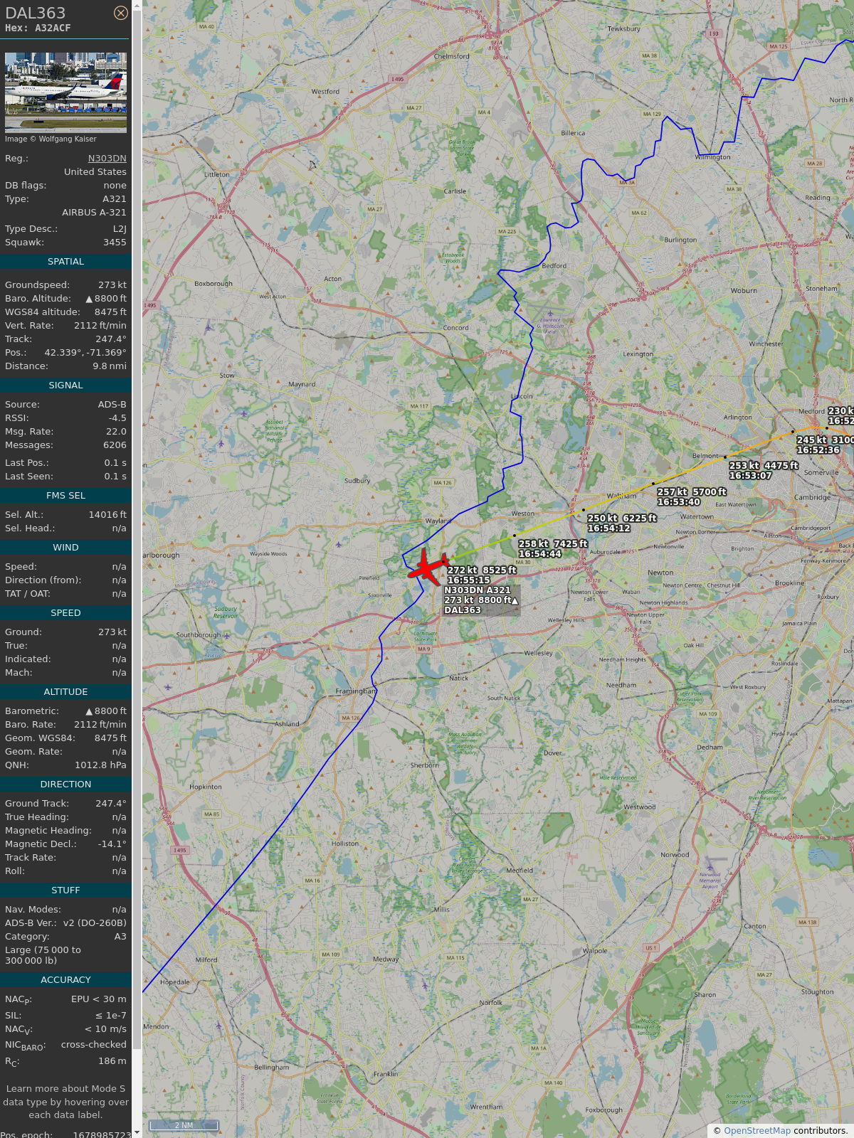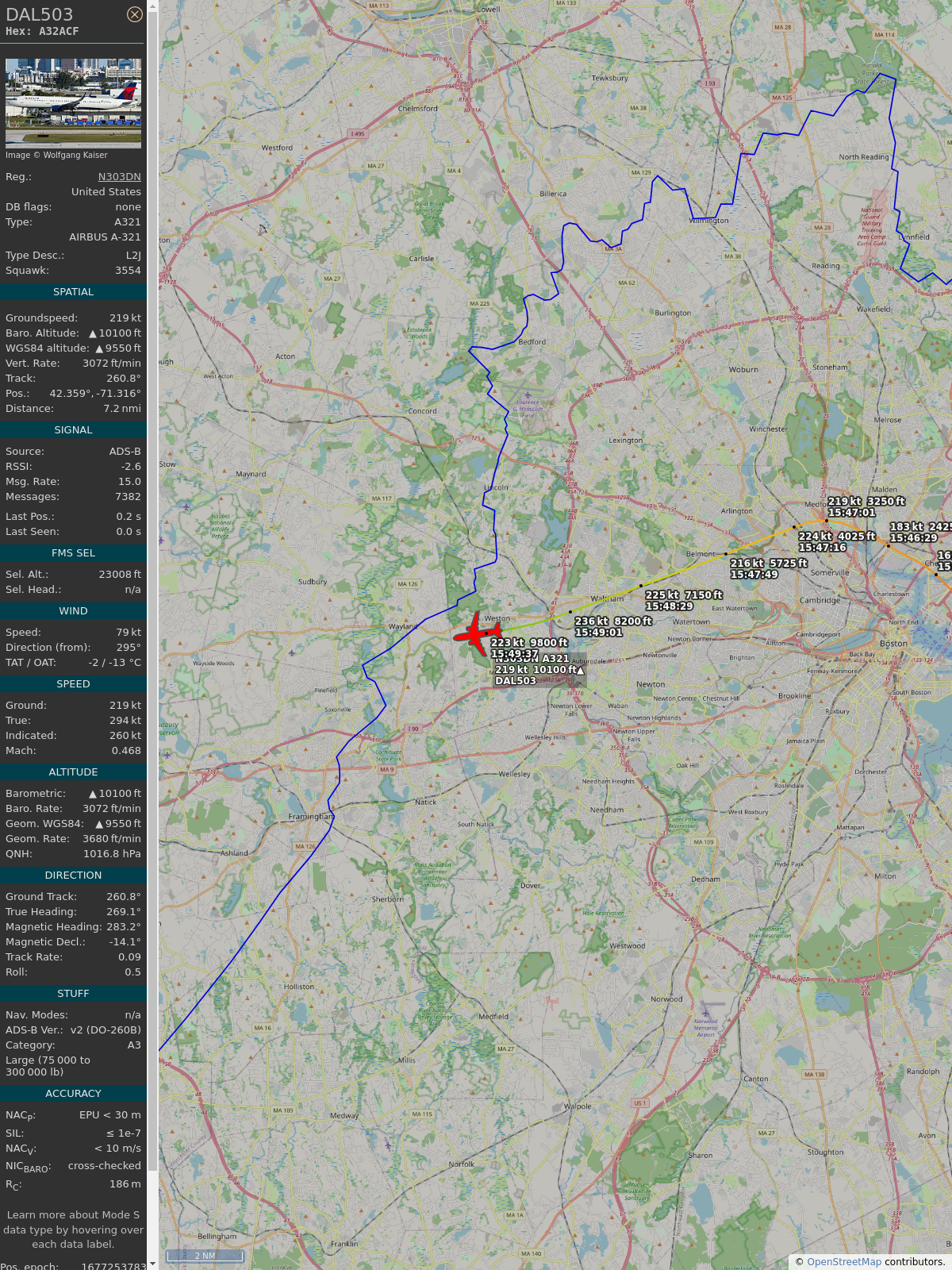#a32acf #dal973 #deltaairlines #aus #bos #planefence #adsb