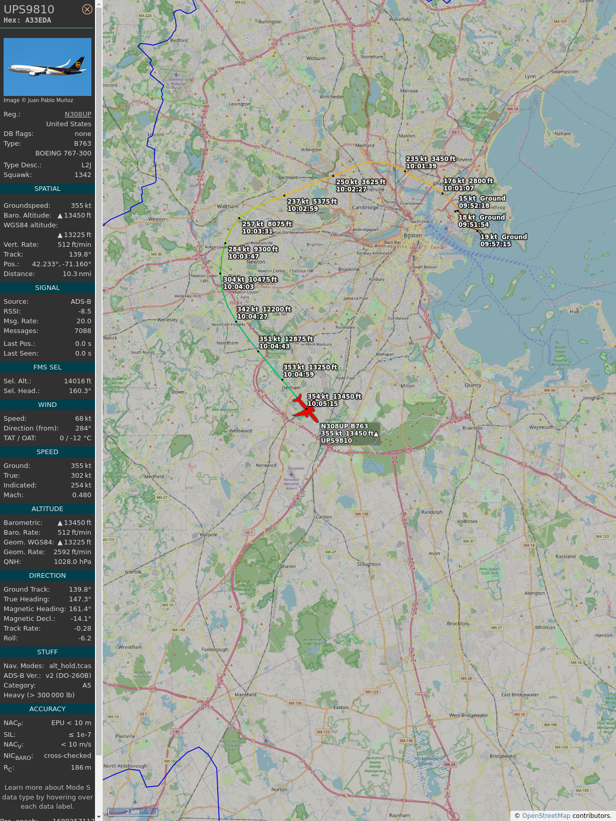#a33eda #ups9810 #unitedparcelservice #bos #sdf #planefence #adsb