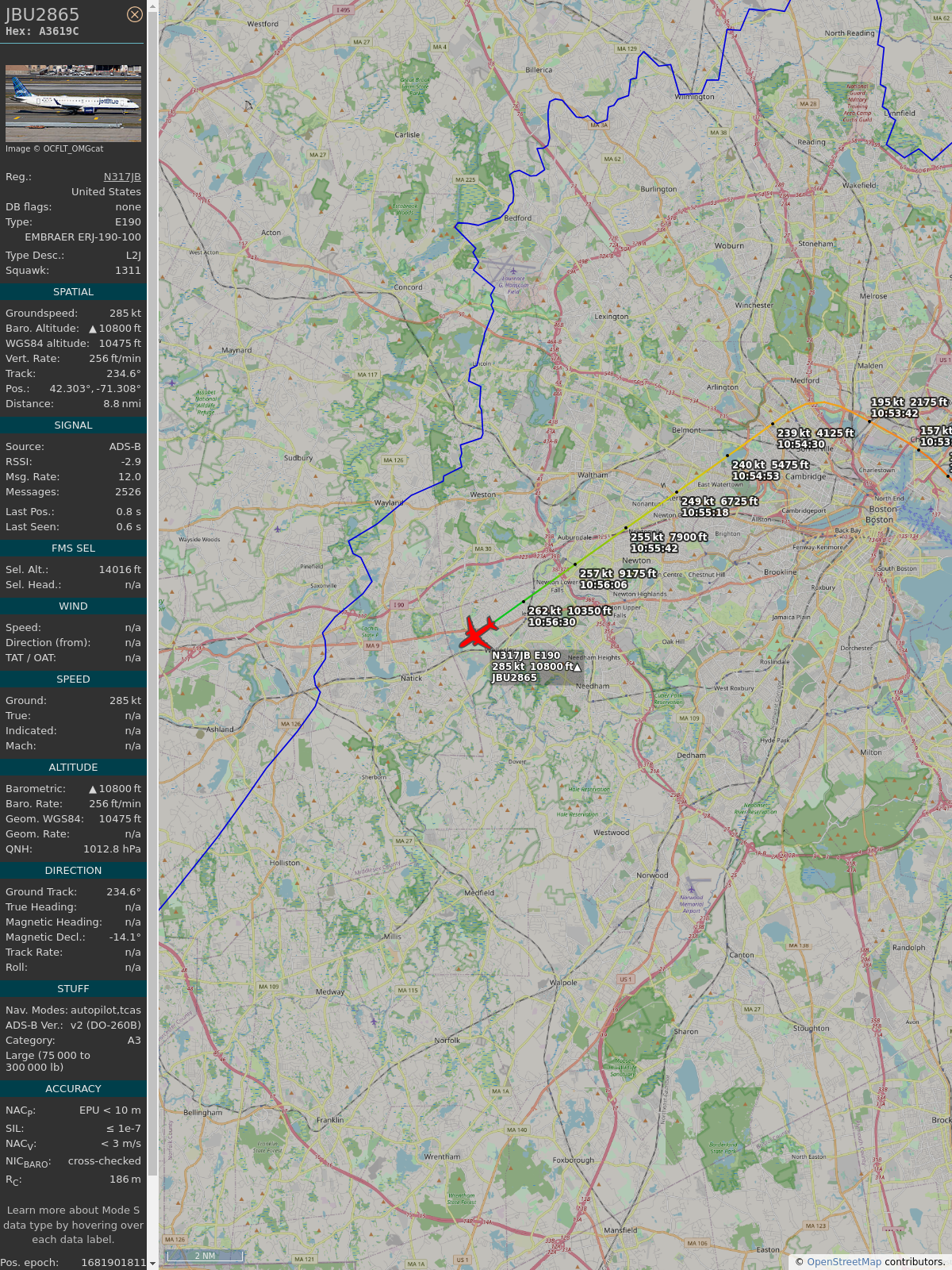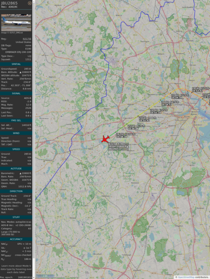 #a3619c #jbu1010 #jetblue #jax #bos #planefence #adsb