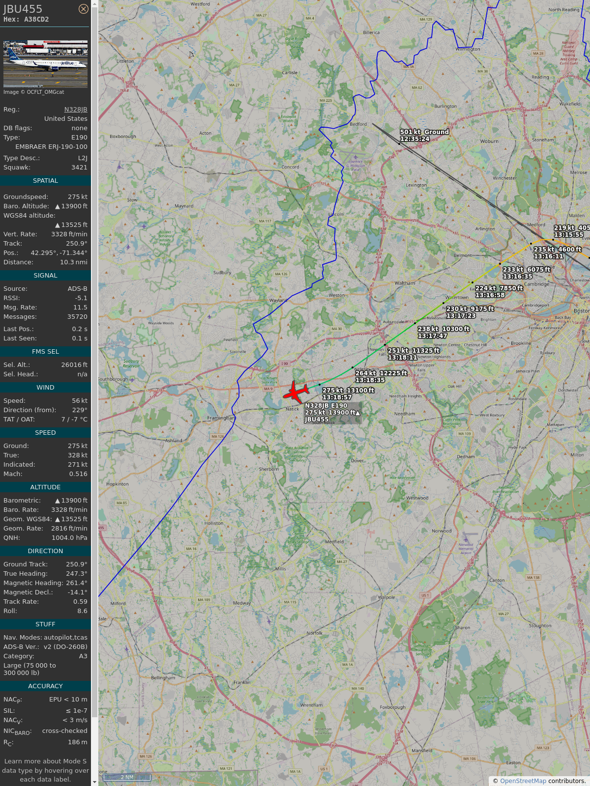 #a38cd2 #jbu1410 #jetblue #jax #bos #planefence #adsb