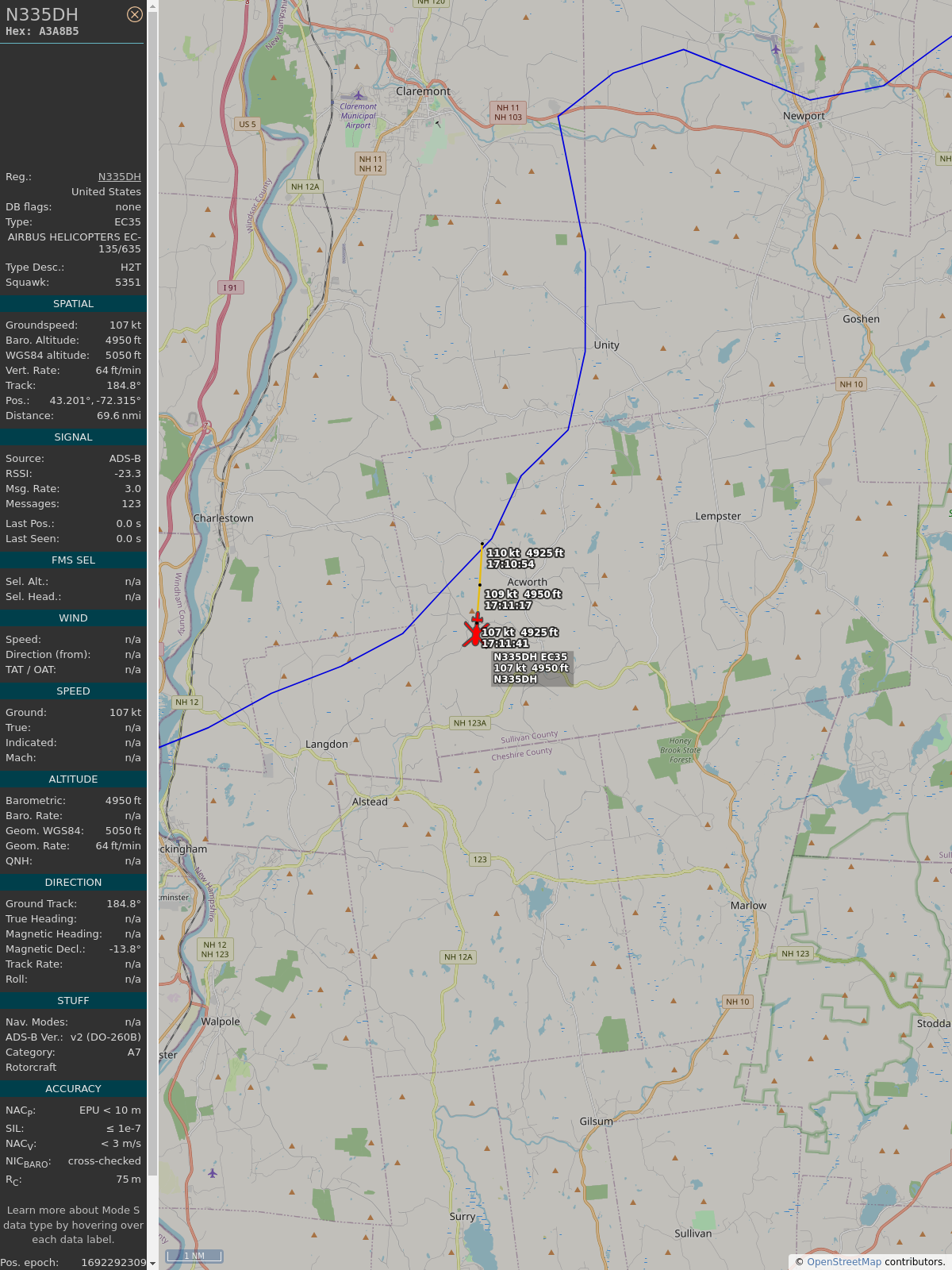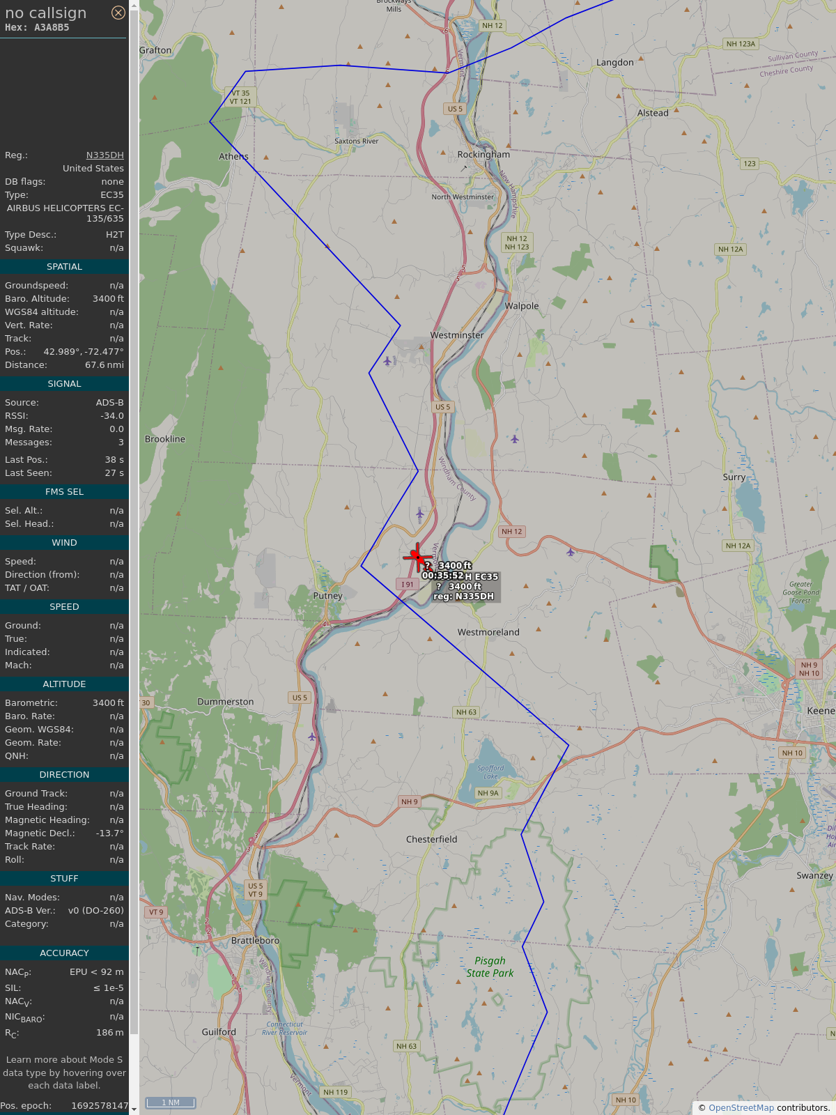 #a3a8b5 #n335dh #maryhitchcockmedicalcenter #planefence #adsb