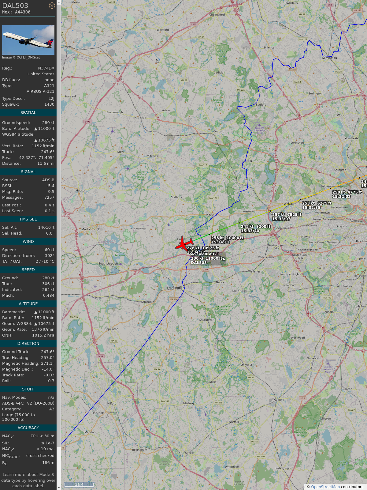 #a44308 #dal973 #deltaairlines #aus #bos #planefence #adsb