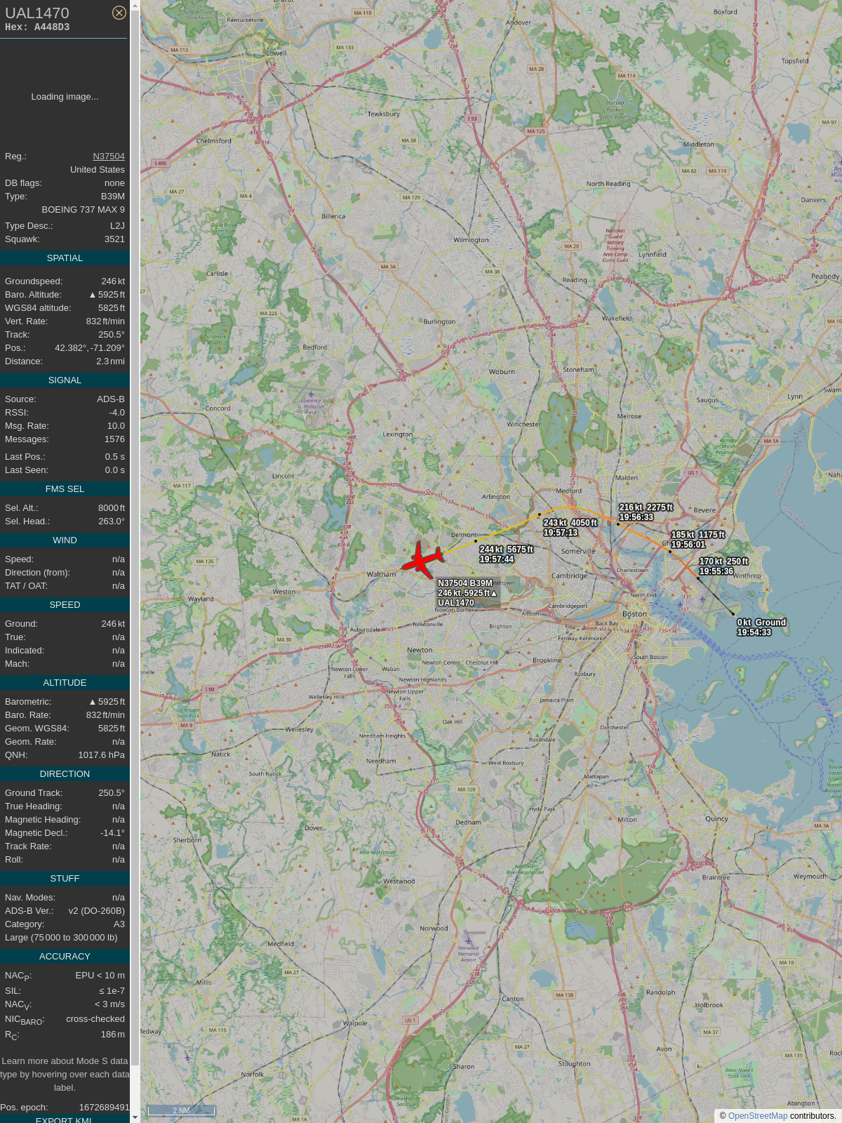 #a448d3 #ual254 #unitedairlines #ord #bos #planefence #adsb