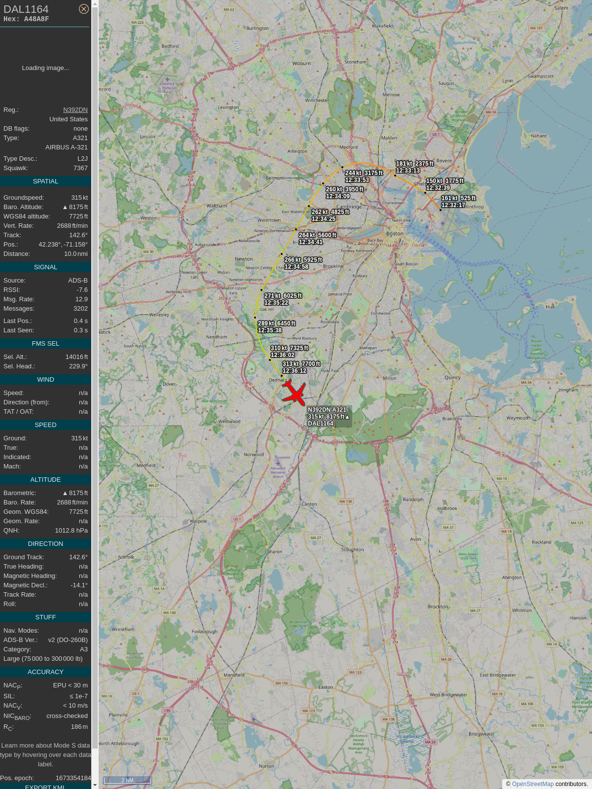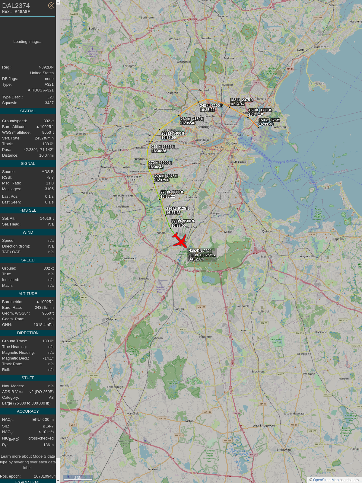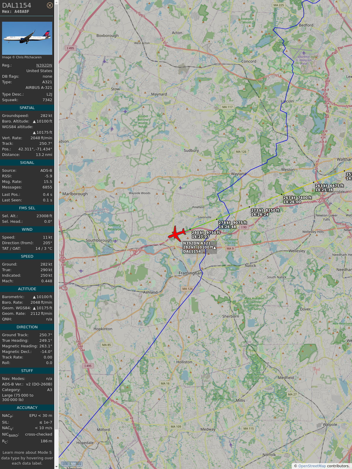 #a48a8f #dal973 #deltaairlines #aus #bos #planefence #adsb