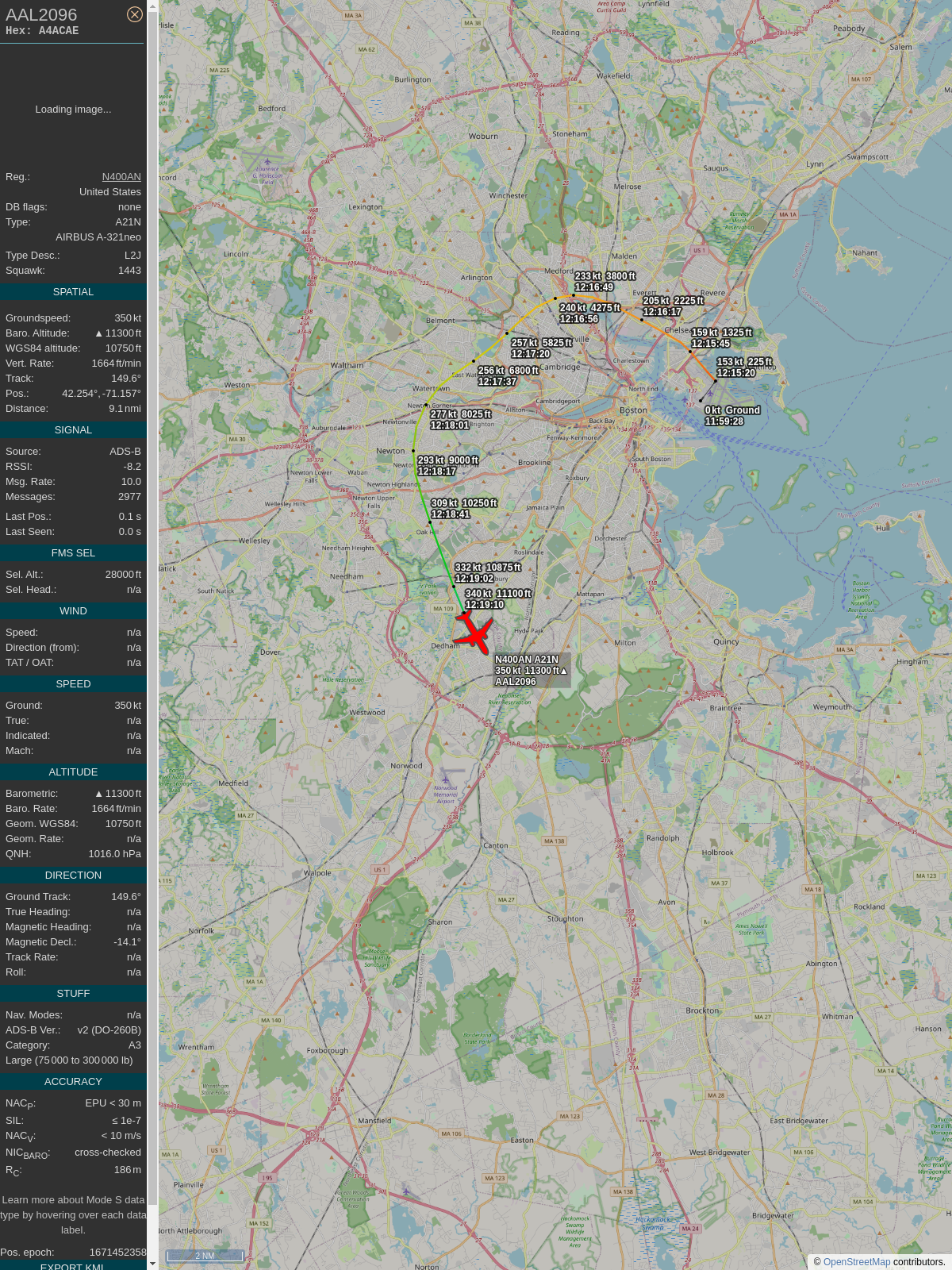 #a4acae #aal1057 #americanairlines #bos #phx #planefence #adsb