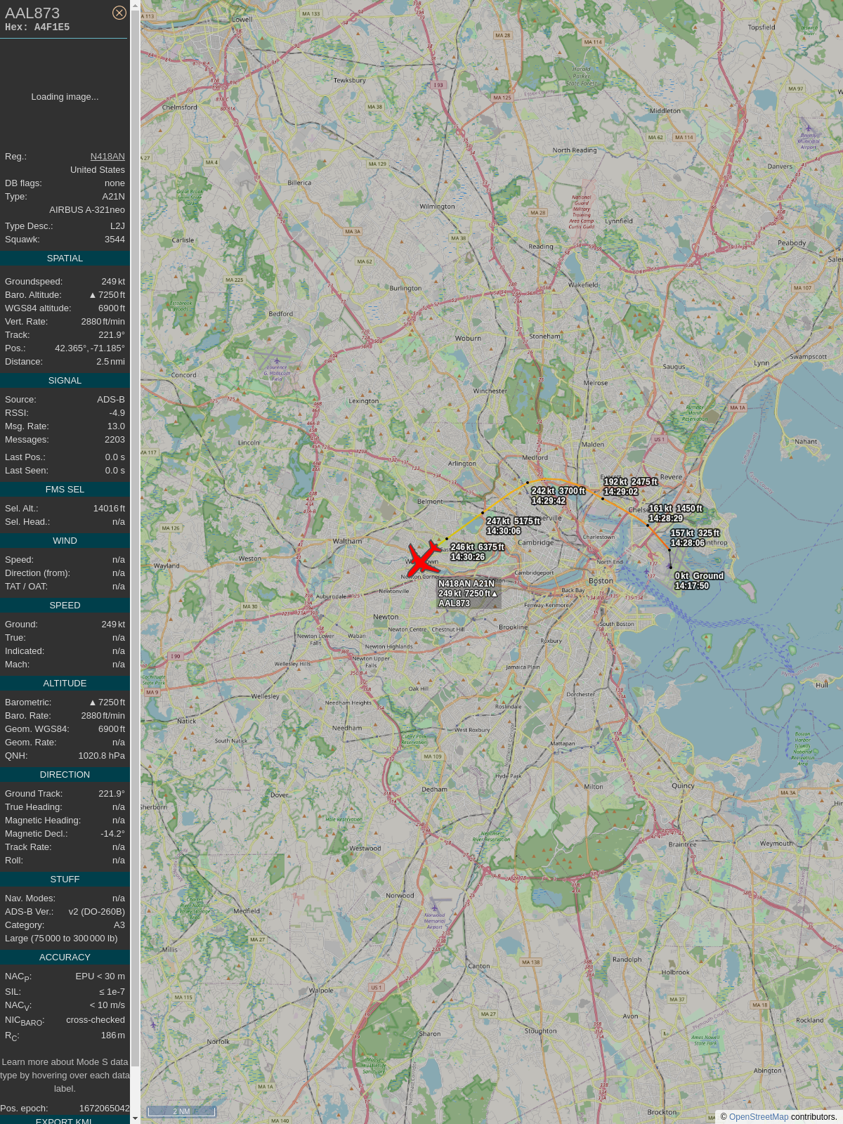 #a4f1e5 #aal873 #americanairlines #mht #clt #planefence #adsb