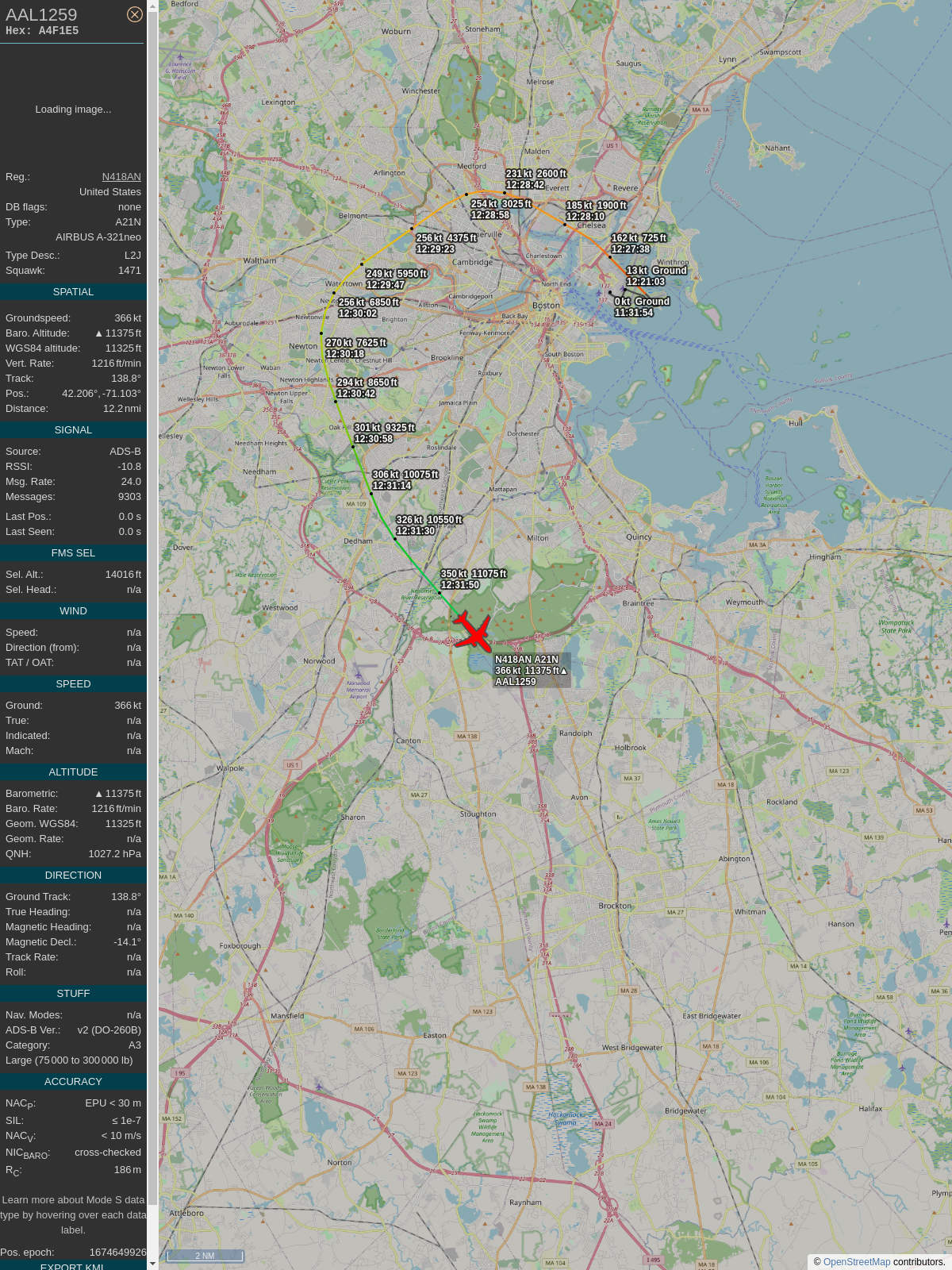 #a4f1e5 #aal1259 #americanairlines #bos #mia #planefence #adsb