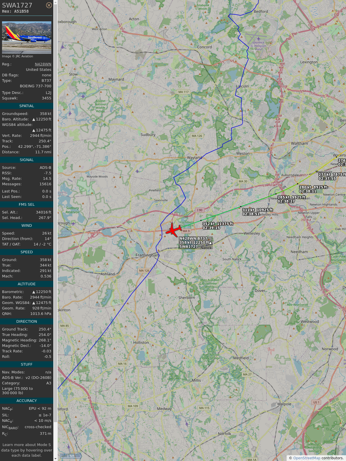 #a51b58 #swa1727 #southwestairlines #okc #dca #planefence #adsb