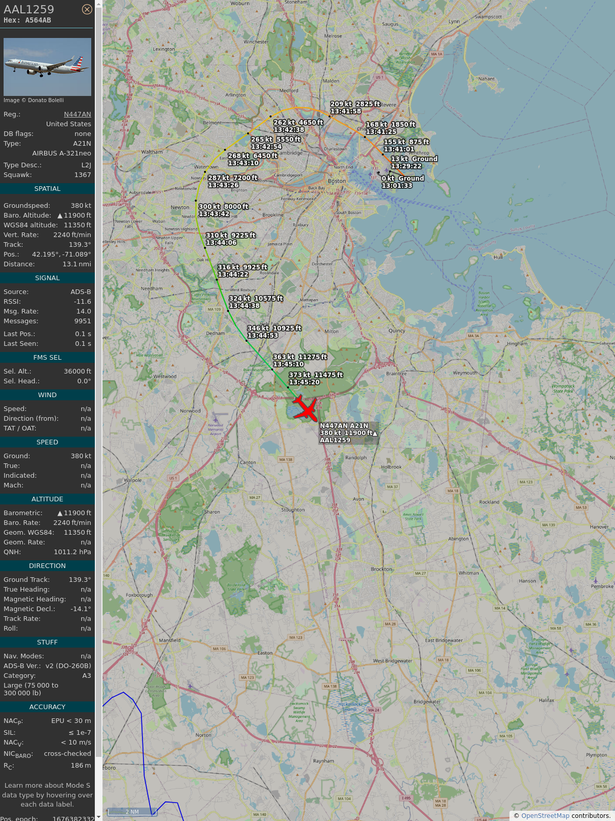 #a564ab #aal418 #americanairlines #bos #clt #planefence #adsb