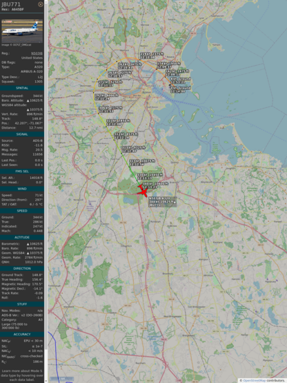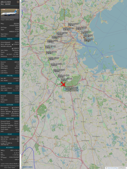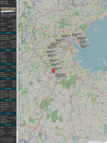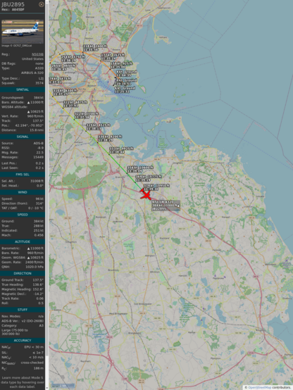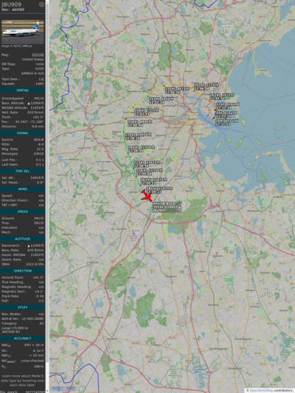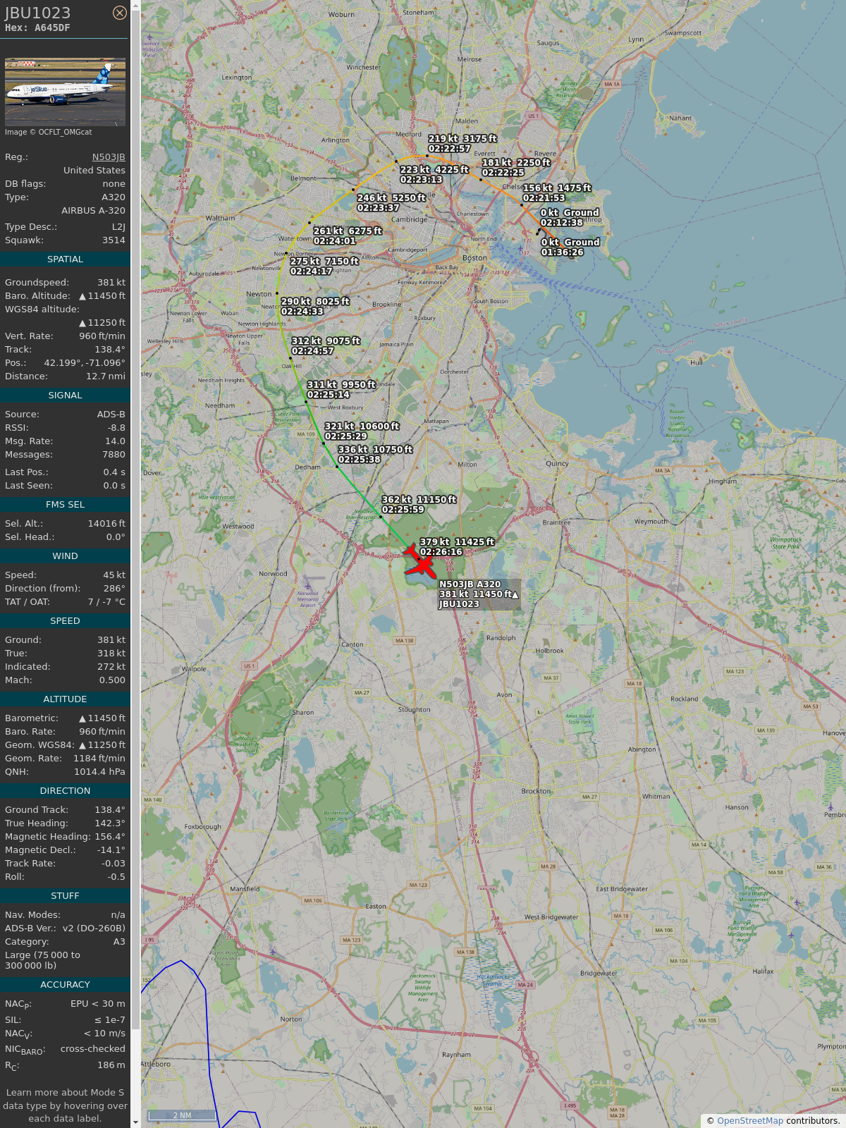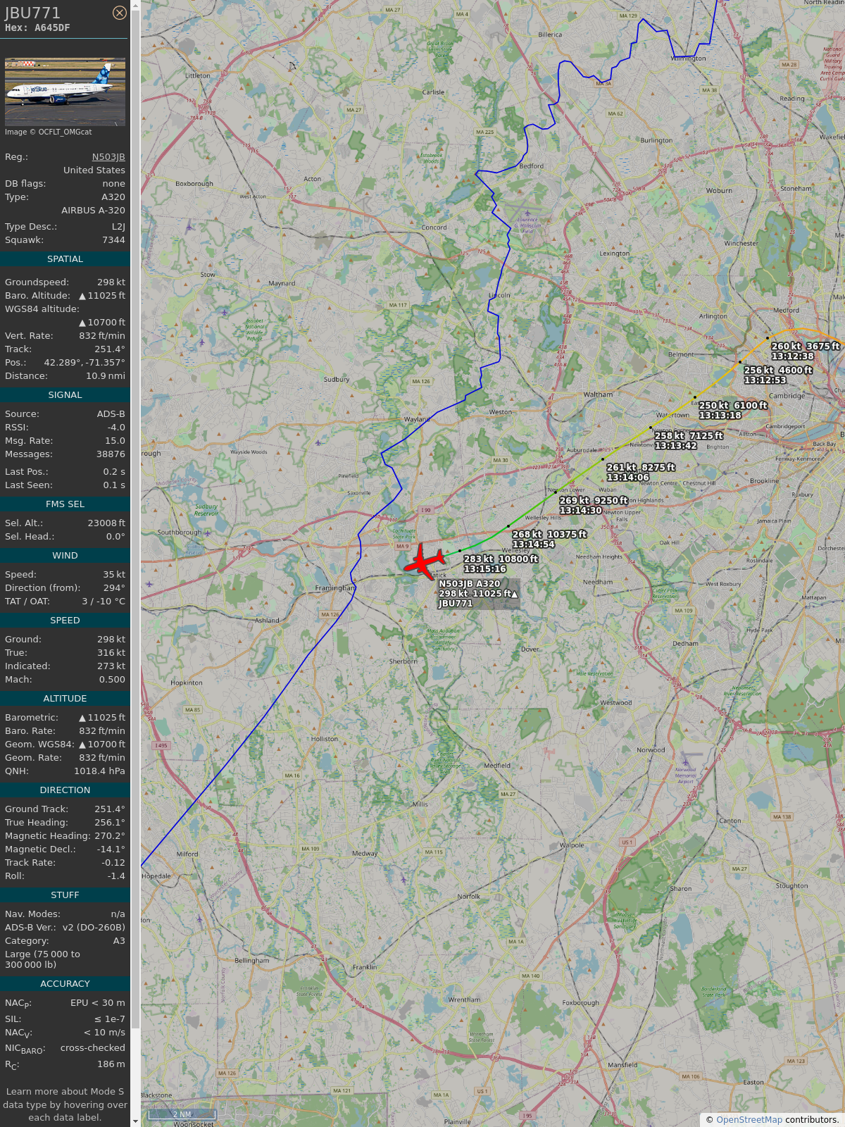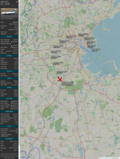 #a645df #jbu1209 #jetblue #bos #jax #planefence #adsb