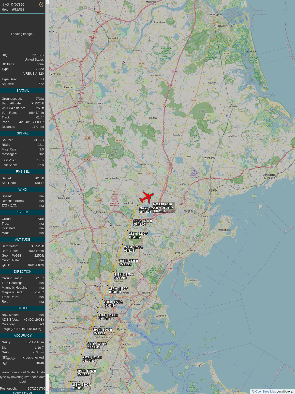#a81abe #jbu2318 #jetblue #jfk #bos #planefence #adsb