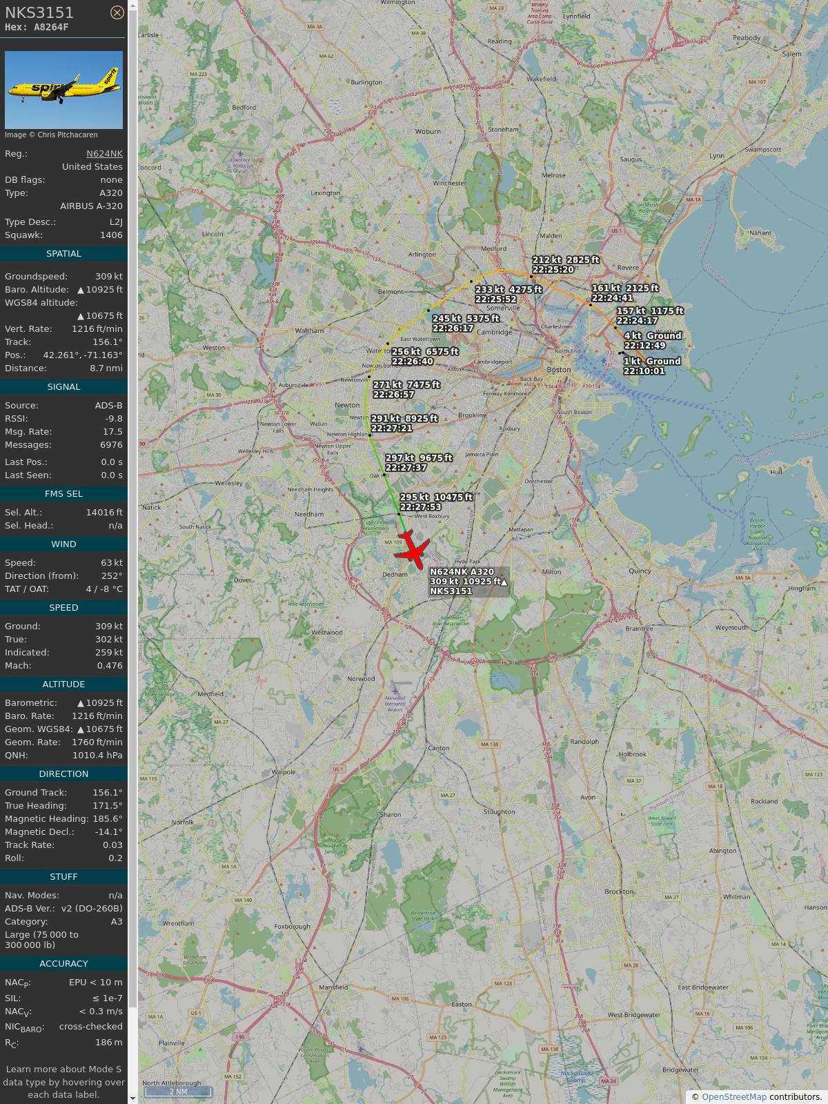 #a8264f #nks296 #spiritairlines #bos #fll #planefence #adsb