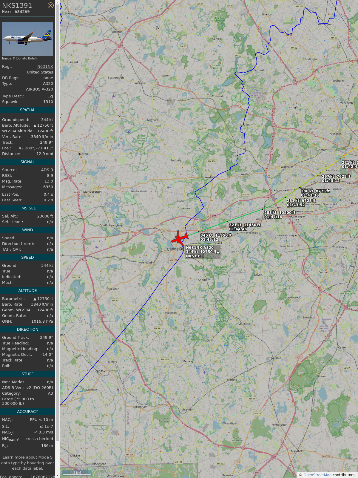 #a842a9 #nks1391 #spiritairlines #bos #tpa #planefence #adsb
