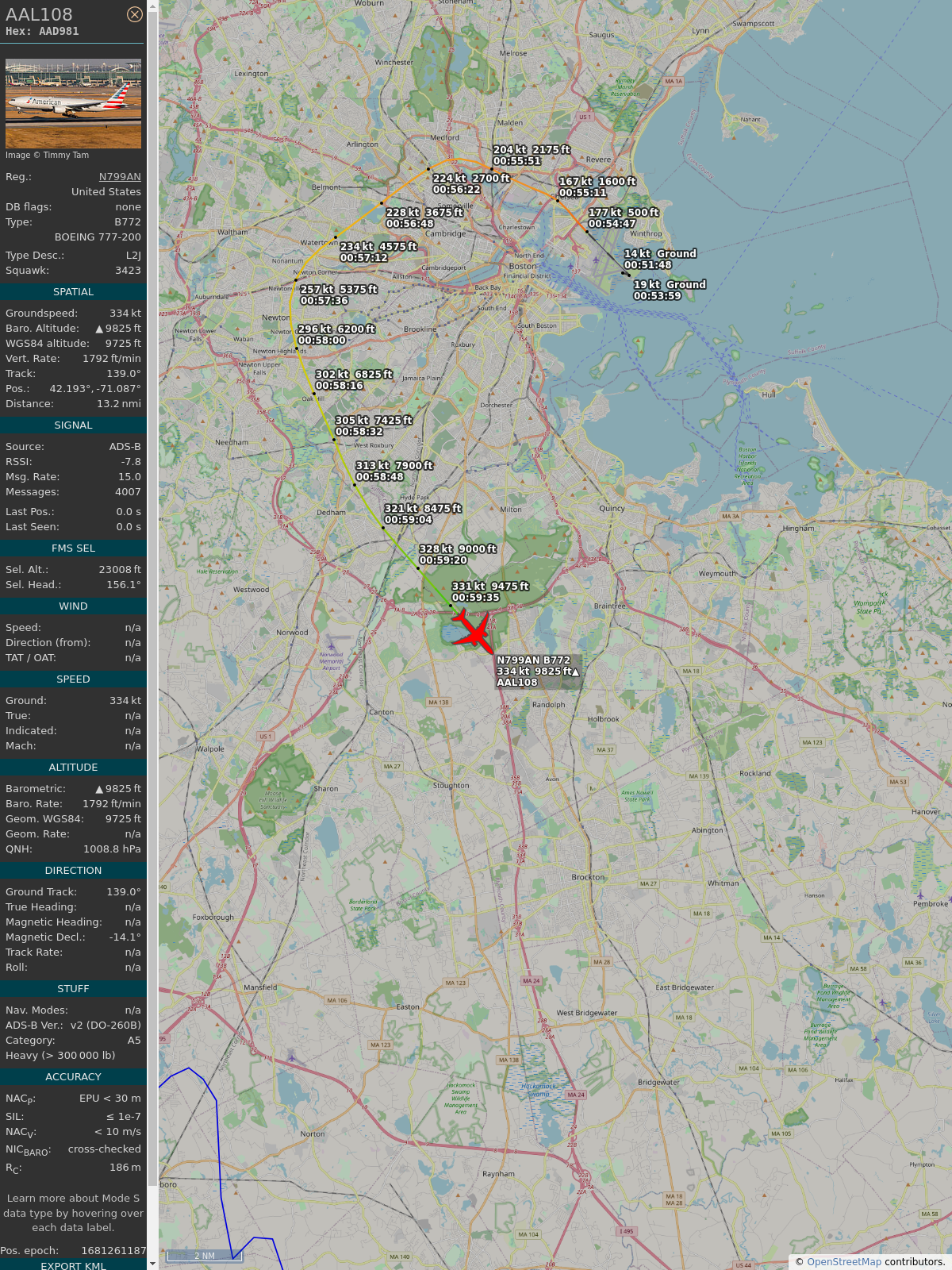 #aad981 #aal108 #americanairlines #bos #lhr #planefence #adsb