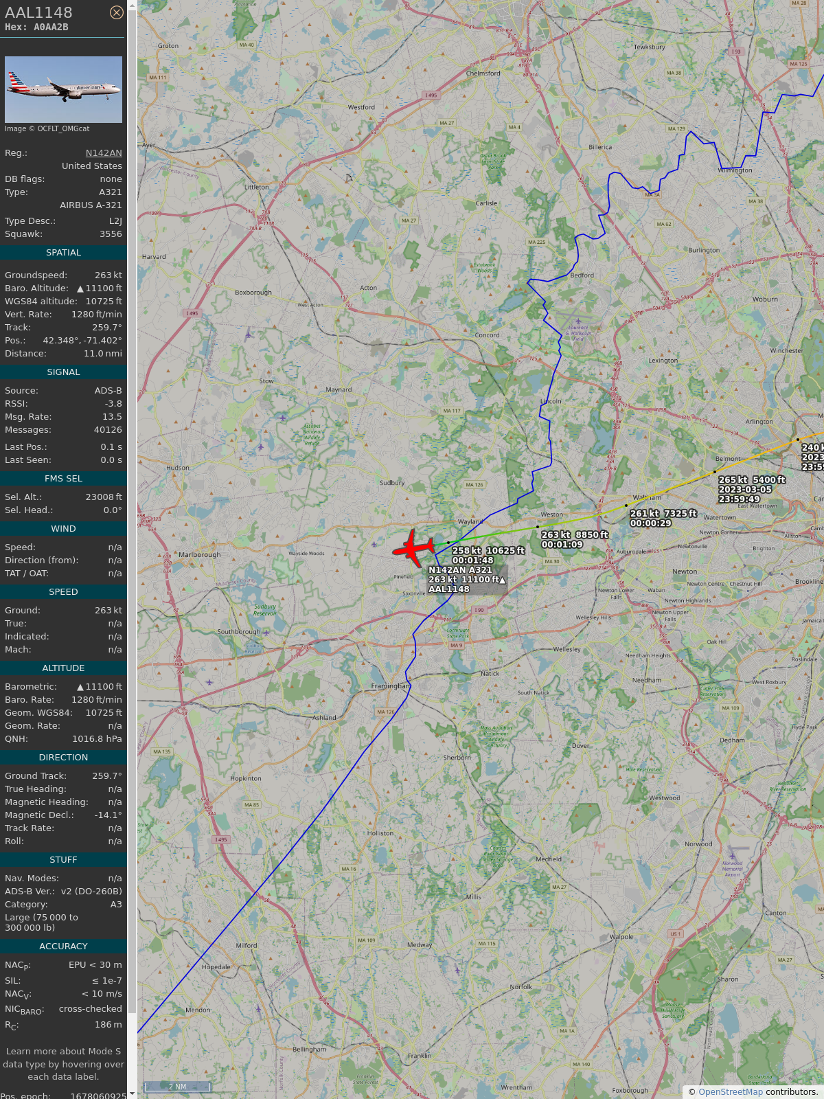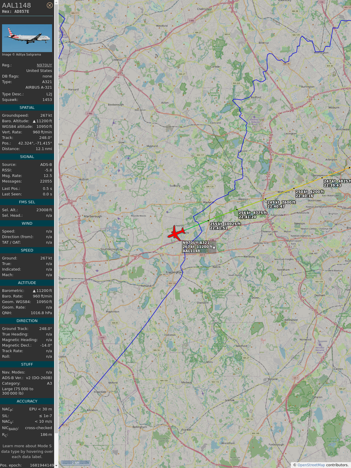 #a0d90c #aal1148 #americanairlines #dfw #bos #planefence #adsb