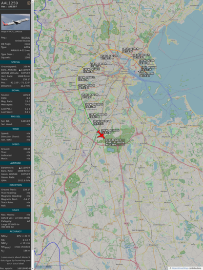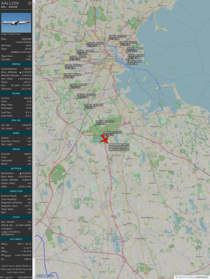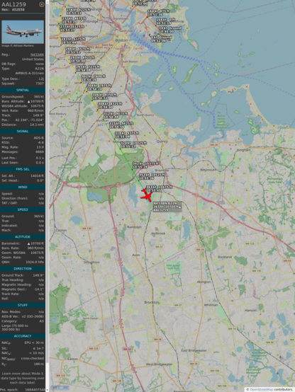 #a4f1e5 #aal1259 #americanairlines #bos #mia #planefence #adsb
